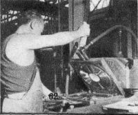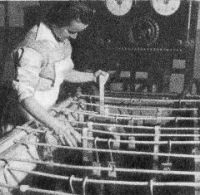Remarquez les nombreux contrôles, nettoyages, vérifications au cours de ces opéra- tions où l'on passe alternativement du « positif », avec sillons en creux, pouvant dire écoutés, au , négatif » dont les sillons en relief ne permettent pas l'écoute.E. La « matrice » est introduite dans une presse. Une pâte, composée de matière plastique, est introduite dans la presse. L'opération ne dure que quelques secondes. Le disque étiqueté est mis sous pochette.Une < matrice » peut donner de trois cents à Quatre cents disques. Un contrôle par sondage a lieu tous ies 50 disques environ. Lorsque la matrice est usée, on en refait une à partir de la mère.